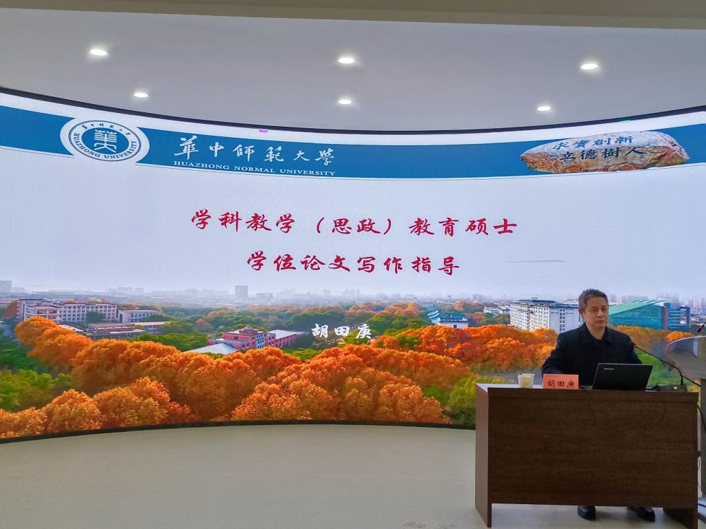 为进一步提高beat365官网研究生教学研究能力和学位论文写作水平,12月5日,学院邀请华中师范大学beat365官方网站学科教学(思政)专业学位负责人胡田庚教授作了题为“学科教学(思政)教育硕士学位论文写作指导”的讲座。讲座由学院党委书记刘建军主持,研究生导师和全体研究生共90余人聆听了讲座。