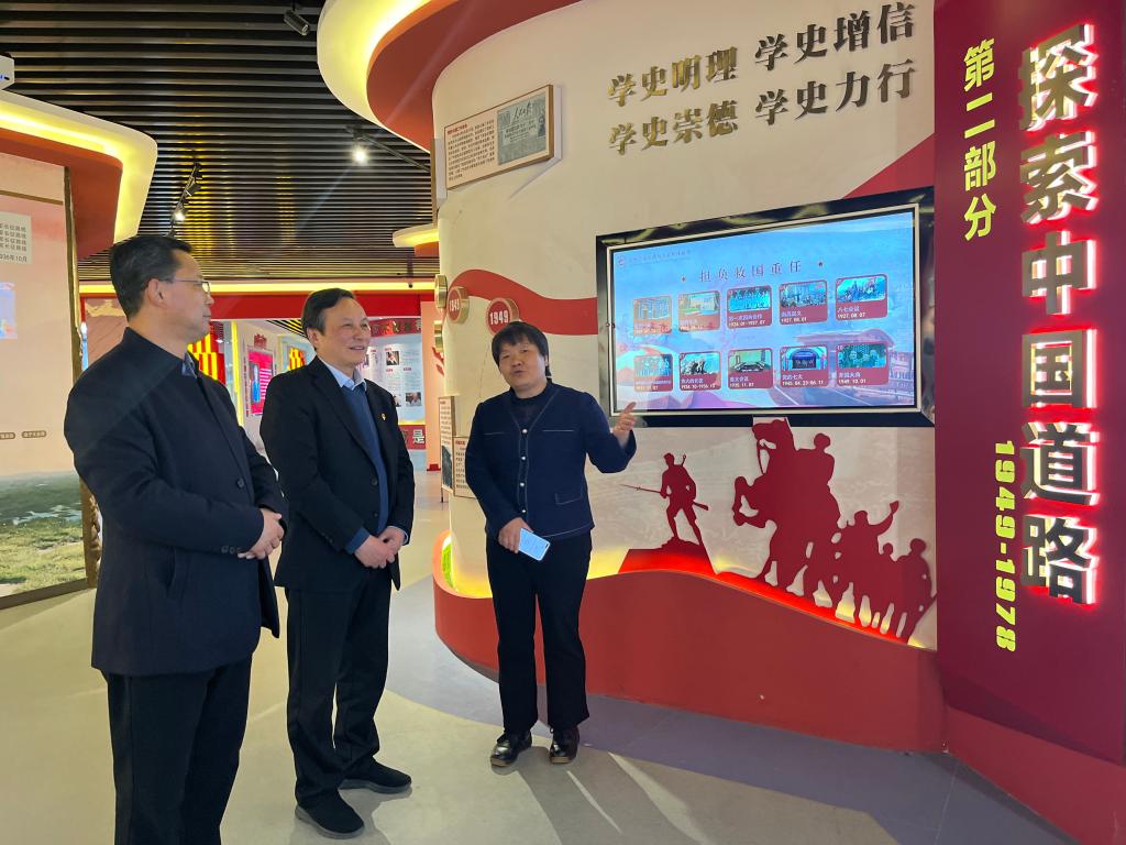 讲座会前,刘建军书记、张敬花副院长陪同卢黎歌教授参观了红色文化教育体验馆。
