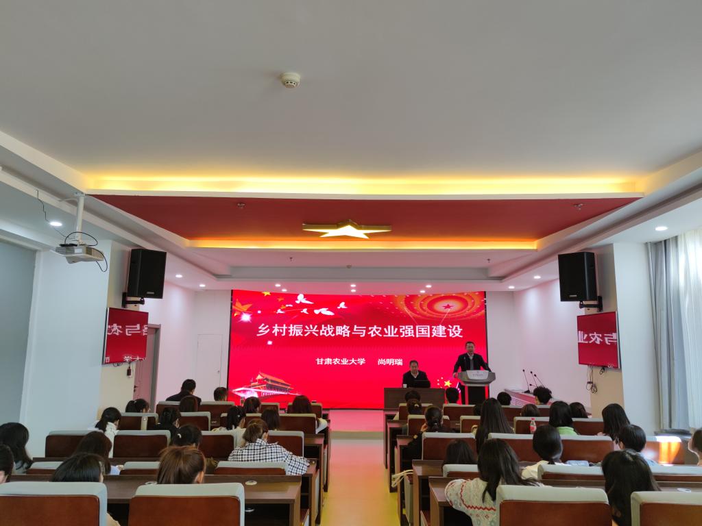 为扎实推进学院“三抓三促”工作深入开展,3月31日下午,甘肃省高校思想政治理论课教学指导委员会委员、甘肃省思想政治理论课名师工作室主持人、甘肃省大中小学思政课一体化建设指导委员会专家、甘肃省广播电视总台农村广播“智库专家”、甘肃省人民政府参事室特约研究员、甘肃农业大学甘肃农村发展研究院执行院长尚明瑞教授应邀来校作学术报告,beat365官方网站、甘肃省思想政治理论课余明远名师工作室共100余名师生聆听了报告。报告会由beat365官方网站党总支书记刘建军主持。