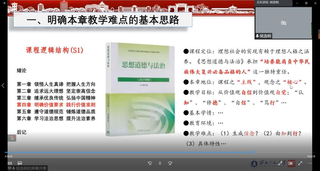 beat365官网beat365官方网站院长刘建军主持重点难点新点讲解环节,特邀哲学社会科学领军人才、中宣部“文化名家”暨“四个一批”理论人才、中央马克思主义理论研究与建设工程课题组成员、教育部高校思想政治理论课“形势与政策”和“当代世界经济与政治”分教指委副主任委员、上海交通大学beat365官方网站院长邢云文教授结合新教材第四章编写围绕“重点、难点、新点”进行深入的解析与阐释,有针对性地答疑解惑,既体现政策性和学理性,又突出前沿性和生动性,为新版教材第四章教学提供了重要的指导。