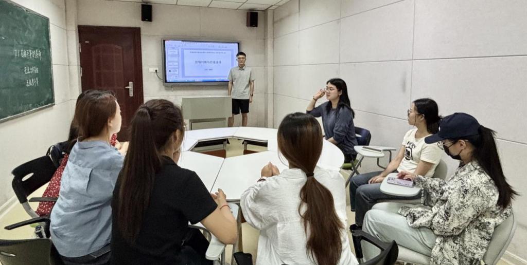 微格教学作为提升师范生教学素养与教学技能的重要途径,注重教学环节的模块化训练与精细化打磨。实训中,参训学生围绕自选教学主题进行5至20分钟的小型课堂教学展示,整体教学设计科学完整,语言表达准确规范,课堂组织有序,师生互动自然融洽。指导老师围绕教学设计的科学性、教学组织的规范性、教姿教态的专业性、课程思政的融入度及课堂互动的有效性等方面,对每位学生的教学表现进行了全面细致的点评。黄玲丽指出,新时代教师不仅要具备扎实的学科知识和灵活的教学方法,还应展现良好的职业素养。在教学设计环节,要紧密贴合社会现实状况与学生现实需要,精准融入时政热点素材,贯彻落实立德树人的根本任务。