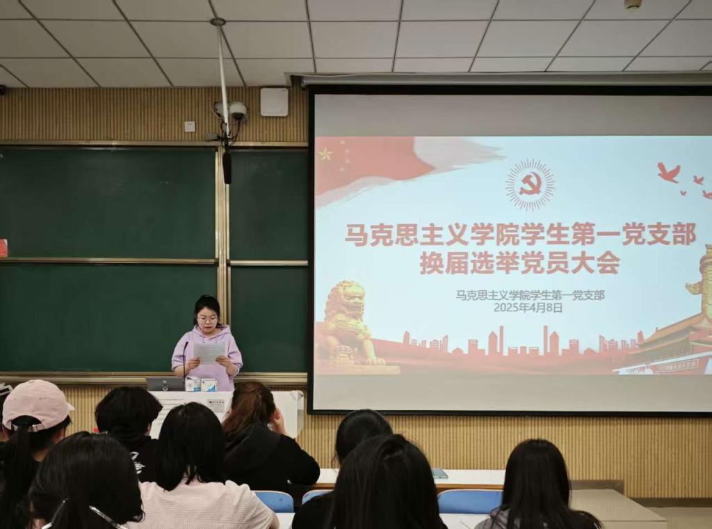 2025年4月8日上午,开云kaiyun体育学生第一党支部委员会换届选举大会在社科楼515教室顺利召开。支部全体正式党员和预备党员共同参会。此次会议由余浩洋同志主持。