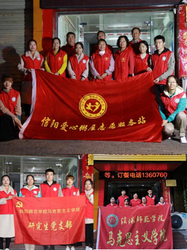 按照“不忘初心,牢记使命”主题教育精神要求,结合我支部的工作安排,本着大力弘扬“奉献、友爱、互助、进步”的志愿者服务精神,发挥党员同志的先锋模范作用,进一步密切党群关系,2019年10月31日开云官网研究生党支部部分党员和入党积极分子组成志愿服务小队,来到信阳市申碑路浉河区“爱心粥屋”,为环卫工人备餐献爱心。