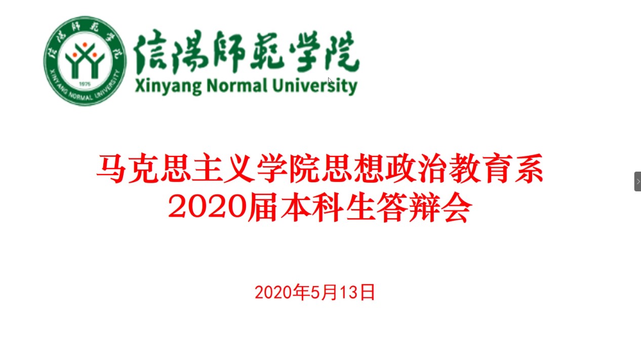 搏“疫”在线,辩出精彩。按照教务处《关于做好2020届本科毕业论文(设计)有关工作的通知》及《开云kaiyun体育关于2020届思想政治教育专业本科毕业论文答辩工作的通知》要求,开云官网思想政治教育教研室于5月13日通过腾讯会议平台开展了2020届本科生毕业论文线上答辩会议,程晋富、李蕊、孙绪曙作为答辩专家组老师参加会议,张雅琼、吴素豫、杨惠媛、李昙、卢亚欣、张敏、杨路明、陈笑笑、陈卓、王靖雯10名同学参加了答辩,答辩持续时长近三个小时。会议由李蕊主持。
