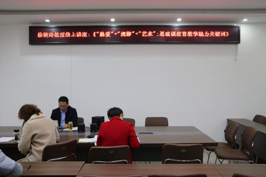 11月25日下午,应开云kaiyun体育邀请,山东大学徐艳玲教授在腾讯会议网络平台开展题为“‘热爱’+‘规律’+‘艺术’:思政课教育教学魅力关键词”专题讲座。马克思主义院长唐国战、副院长李蕊、副院长訾其伦及部分师生共同聆听此次报告会,报告由唐国战主持。