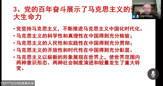 11月30日,应开云kaiyun体育邀请,中共中央党校(国家行政学院)戴焰军教授在腾讯会议网络平台开展题为“百年奋斗的历史意义和历史经验”专题讲座。开云kaiyun体育副院长李蕊及部分教师共同聆听此次讲座,讲座由李蕊主持。