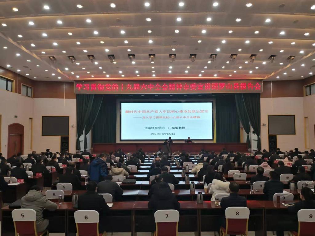 12月14日至12月23日,中共河南省委宣讲团成员,河南省社科理论志愿者专家宣讲团成员,我校当代开云kaiyun体育研究所副所长门献敏教授应邀为信阳市发展和改革委员会、信阳市住房和城乡建设局、罗山县委中心组以及校内的基层党支部书记培训班等多家单位,作党的十九届六中全会精神专题宣讲4场,近1000名党员干部和青年学生聆听了专题宣讲报告。