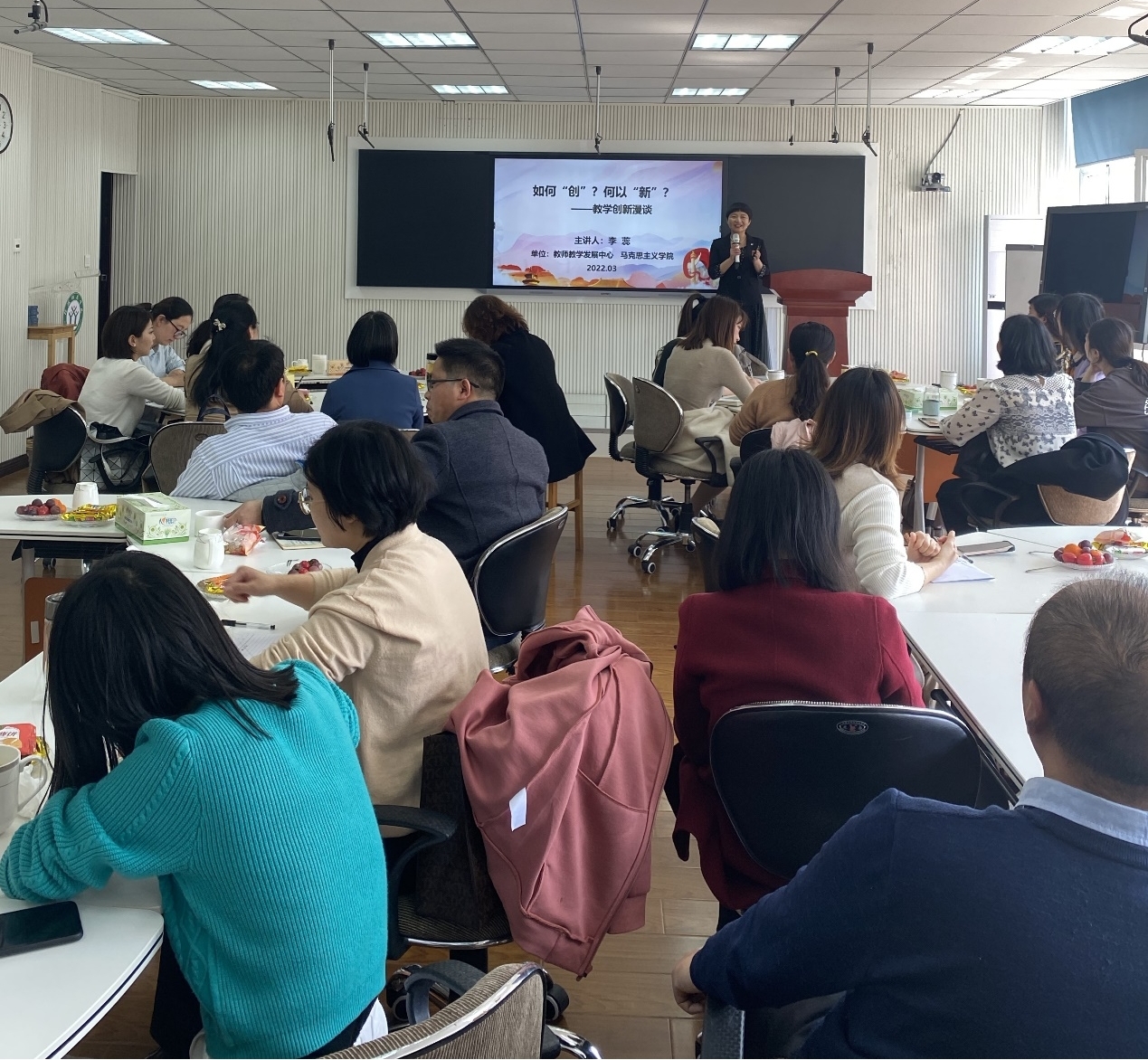 3月11日,开云官网副院长李蕊教授应教师教学发展中心邀请,在教7楼501教室作 “如何 ‘创’? 何以 ‘新’ ? ——教学创新漫谈”专题讲座,开云官网近20名青年教师和其他学院10多位教师参加了本次活动。