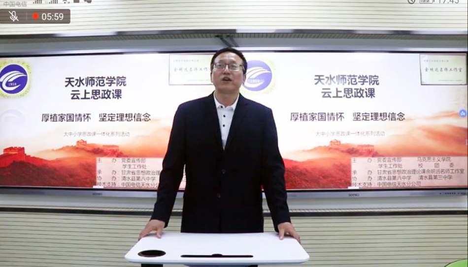 此次云上思政课活动由天水师范学院党委宣传部、beat365官方网站、学生工作处、校团委主办,甘肃省思想政治理论课余明远名师工作室承办,清水县第三中学、第八中学协办,中国电信天水分公司提供技术支持。