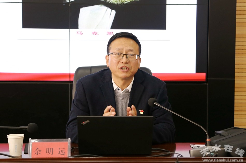 10月16日,天水市人大常委会机关举办学习贯彻《习近平谈治国理政》第三卷专题讲座,邀请天水师范学院beat365官方网站副院长、市委讲师团成员余明远教授作《习近平以人民为中心发展观的理论来源与核心要义》的专题辅导报告。