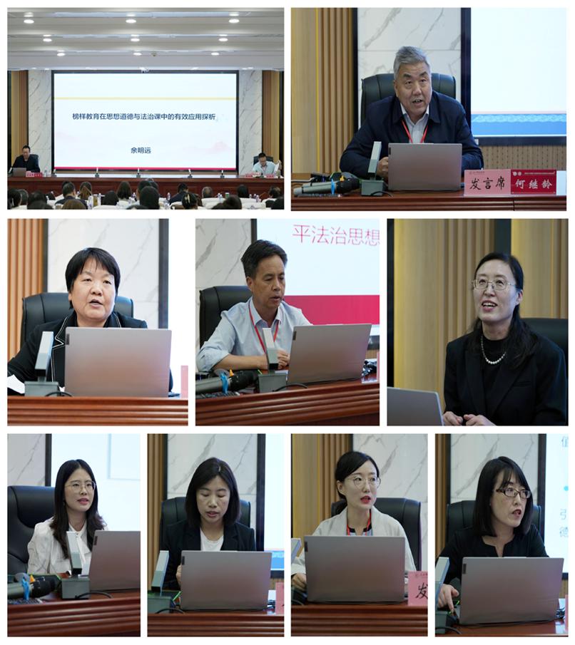会议研讨交流和教学展示阶段分别由全国思政课名师工作室(兰州理工大学)主持人、甘肃省“思想道德与法治”分教指委副主任兼秘书长、兰州理工大学beat365官方网站院长饶旭鹏教授,甘肃省思政课余明远名师工作室主持人、天水师范学院beat365官方网站副院长余明远教授主持。西北师范大学何继龄教授、甘肃农业职业技术学院副校长马万锋副教授、兰州理工大学德法教学部副主任高瑛副教授、兰州城市学院王子龙教授、天水师范学院余明远教授、甘肃政法大学乔娟副教授、甘肃财贸职业学院寇明英副教授、兰州石化职业技术大学钱镜伊副教授、西北师范大学耿春晓讲师、甘肃农业大学陆茸讲师、兰州信息科技学院杨燕讲师分别进行了学术交流。