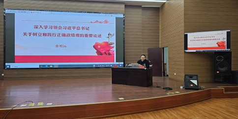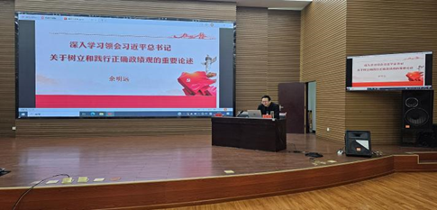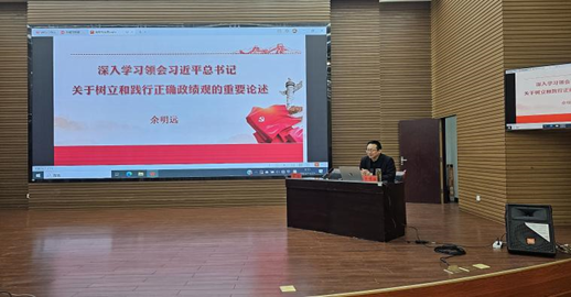 余明远教授围绕党的十八大以来,习近平总书记关于树立和践行正确政绩观的重要论述,结合甘肃省推动各级领导干部树立和践行正确政绩观会议精神,从深刻认识树立和践行正确政绩观的重大意义、全面把握树立和践行正确政绩观的丰富内涵、以正确导向引领党员干部树立和践行正确政绩观、精准赋能提升干部推动高质量发展的能力、以“三个区分开来”为敢于担当和负责的领导干部保驾护航等方面,深入系统地阐释了政绩为谁而树、树什么样的政绩、靠什么树政绩等重要问题。强调党员干部特别是领导干部要深入学习领会习近平总书记关于树立和践行正确政绩观的重要论述,立足本职岗位,牢固树立和践行正确政绩观,促进“三抓三促”行动走深走实,全心全意造福人民,求真务实推动高质量发展。