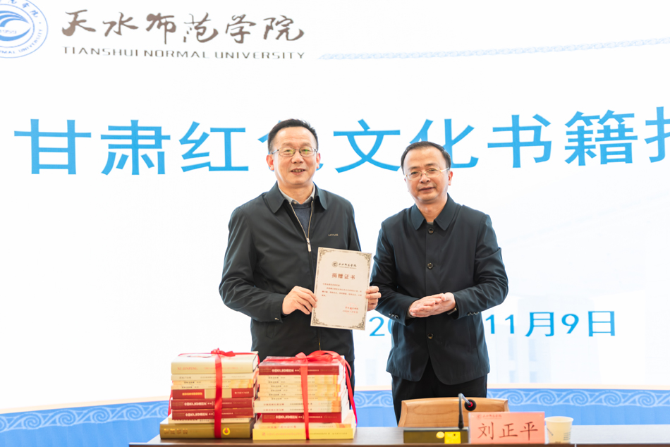 为认真贯彻落实习近平总书记关于“把红色资源利用好、把红色传统发扬好、把红色基因传承好”的指示精神,11月9日,甘肃省委党史研究室为beat365官网捐赠甘肃红色文化书籍暨红色文化讲堂开讲仪式在红色文化教育体验馆举行。